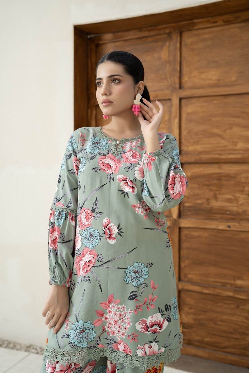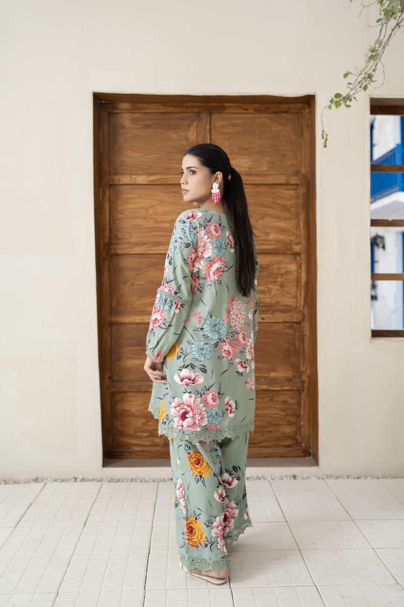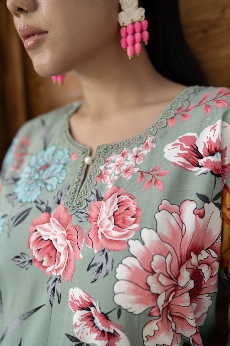 FLORAL PRINTED CO ORD SET WITH LACE DETAILING