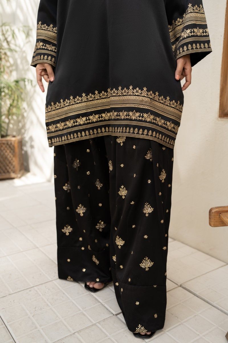 SCREEN PRINTED COTTON SILK TUNIC PAIRED WITH EMBROIDERED FARSHI SHALWAR