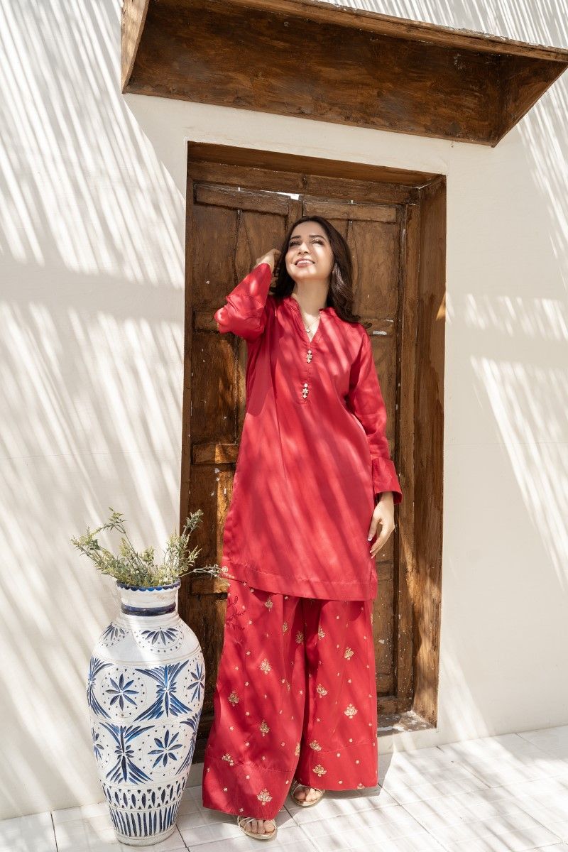 COTTON SILK TUNIC WITH MATCHING FARSHI SHARWAR